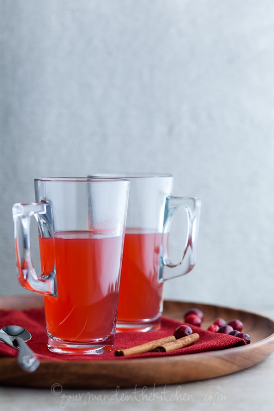 Chilly days call for holiday warmth and this drink is a cup of coziness.  Cranberries and lemons are simmered with cinnamon sticks, slices of fresh ginger and a sprinkling of gogi berries. Warm or iced, this tea is great when I feel run down by holiday festivities or feel a tickle in my throat.